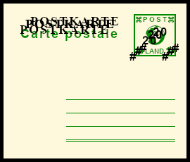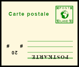 schräger Ganzsachenaufdruck: Ganzsache die als anfallender Ausschuss mit einem Ganzsachenaufdruck versehen wurde der nicht parallel zur Grundlinie ausgerichtet ist |