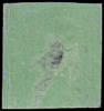 Briefmarke mit Bruch: Briefmarke mit starker Knickung des Papiers bei dem die Papierstruktur verletzt ist |
