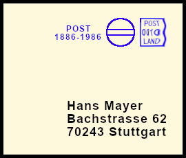 leichter Freistempel: Postsendung die durch einen Fehler mit einem klaren jedoch farblich zu schwach geratenem Freistempel versehen wurde |