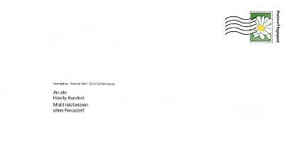 Geistermarke: briefmarkenähnliche Grafik auf einer Postwurfsendung die bei einem Empfänger den Eindruck einer frankierten Postsendung hervorrufen soll |
