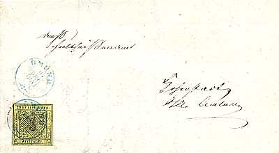 12.1851: postal shipment after intoduction of the 1st postage stamps (15.10.1851) with franking |