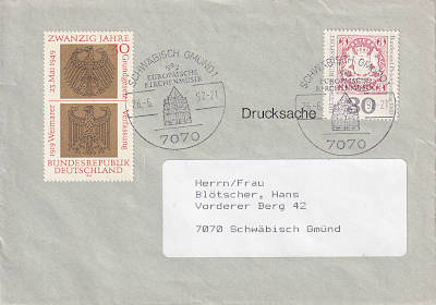 Überfrankatur: Freimachung einer Post-sendung die in ihrer Höhe über das erforder-liche Entgelt hinausgeht (z. B. 5 Mark anstatt 4 Mark) |