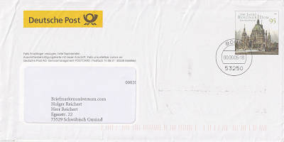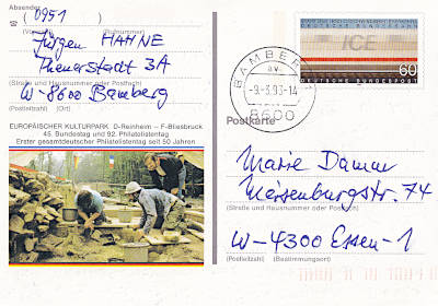 Ganzsache mit Bruch: Ganzsache mit starker Knickung des Papiers bei dem die Papierstruktur verletzt ist |