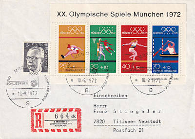 Hinweisvermerk Olympiade: Vermerk auf einer Postsendung die bei einer Postdienst-stelle bei Olympischen Spiele aufgegeben wurde |