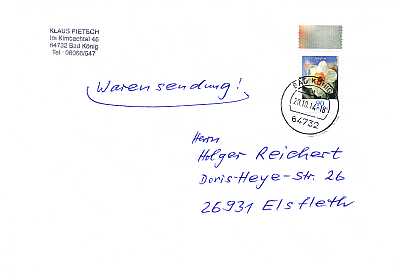Postal Marking Throw In Registeration: marking indicating an additional service from Deutsche Post in which the sender receives a certificate of delivery and the deliverer docu-ments the insertion into the recipient´s mailbox |