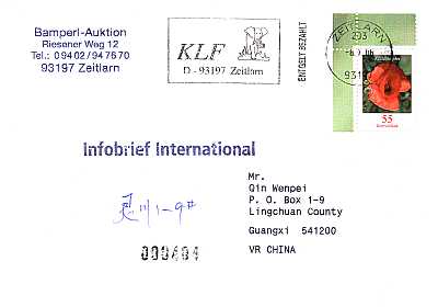 Foreign Postal Shipment At Inland Post-age Fee: foreign postal shipment that was sent at inland postage fee (e.g. 4 million instead of 18 million mark) |