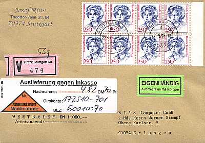 Brief mit Wertangabe und Nachnahme |
