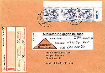 Brief mit Übergabe-Einschreiben und Nachnahme |