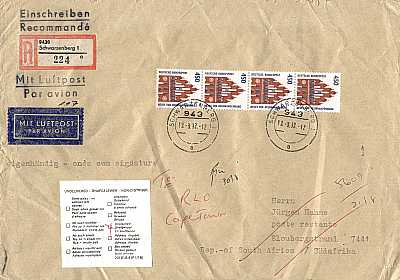 Brief mit Übergabe-Einschreiben, Luftpost und Rückschein |