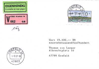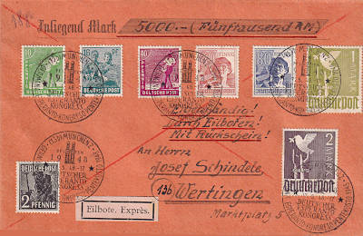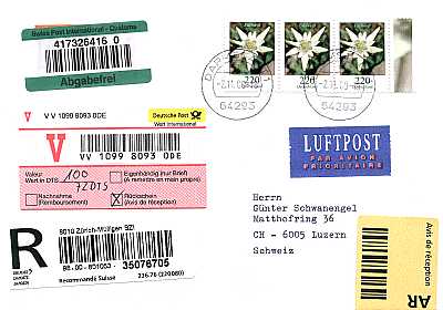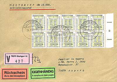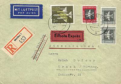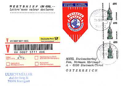 Brief mit Wertangabe, Eilzustellung und Luftpost |
