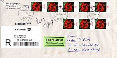 Gewichtsangabe: Angabe des Gewichts auf einer Postsendung zwecks Errechnung der Postgebühr (z. B. Pakete) oder um eine Beraubung zu erschweren (z. B. Wertbriefe) |