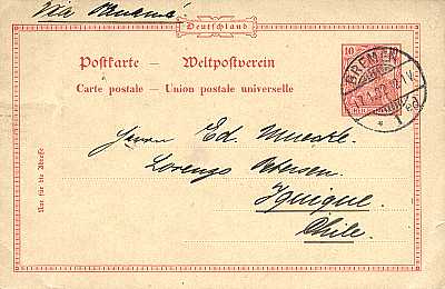 Viavermerk: Vermerk mit dem ein Absender angibt über welchen Leitweg (z. B. via Pana-ma) bzw. welchem Transportmitel (z. B. via airmail) diese befördert werden sollte (latein-isch = über) |