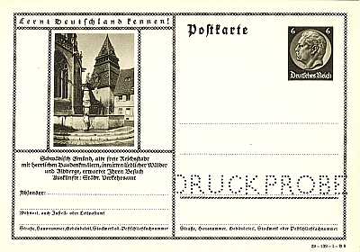 Ganzsachenpostkarte mit "Muster"-Aufdruck |