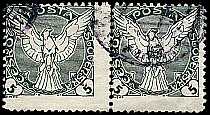 Spezialkammzähnung: alle Briefmarken von zwei waagrechten Reihen mit unterschiedlicher Größe werden an drei oder vier Seiten gleich-zeitig gezähnt (Schwedenzähnung) |