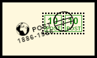 schräger Maschinenstempel: Maschinenstempel bei dem durch eine Zufälligkeit die Ränder nicht parallel zur Grundlinie ausge- richtet sind |