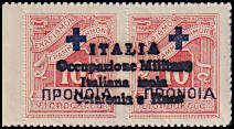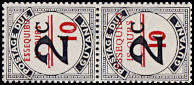Zusammendruck mit einfachem und doppeltem Briefmarkenaufdruck: Einheit bei der als beabsichtigte Ausführung eine Briefmarke mit einem einfachen und die andere mit einem zweifachen Briefmarken-aufdruck versehen wurde |